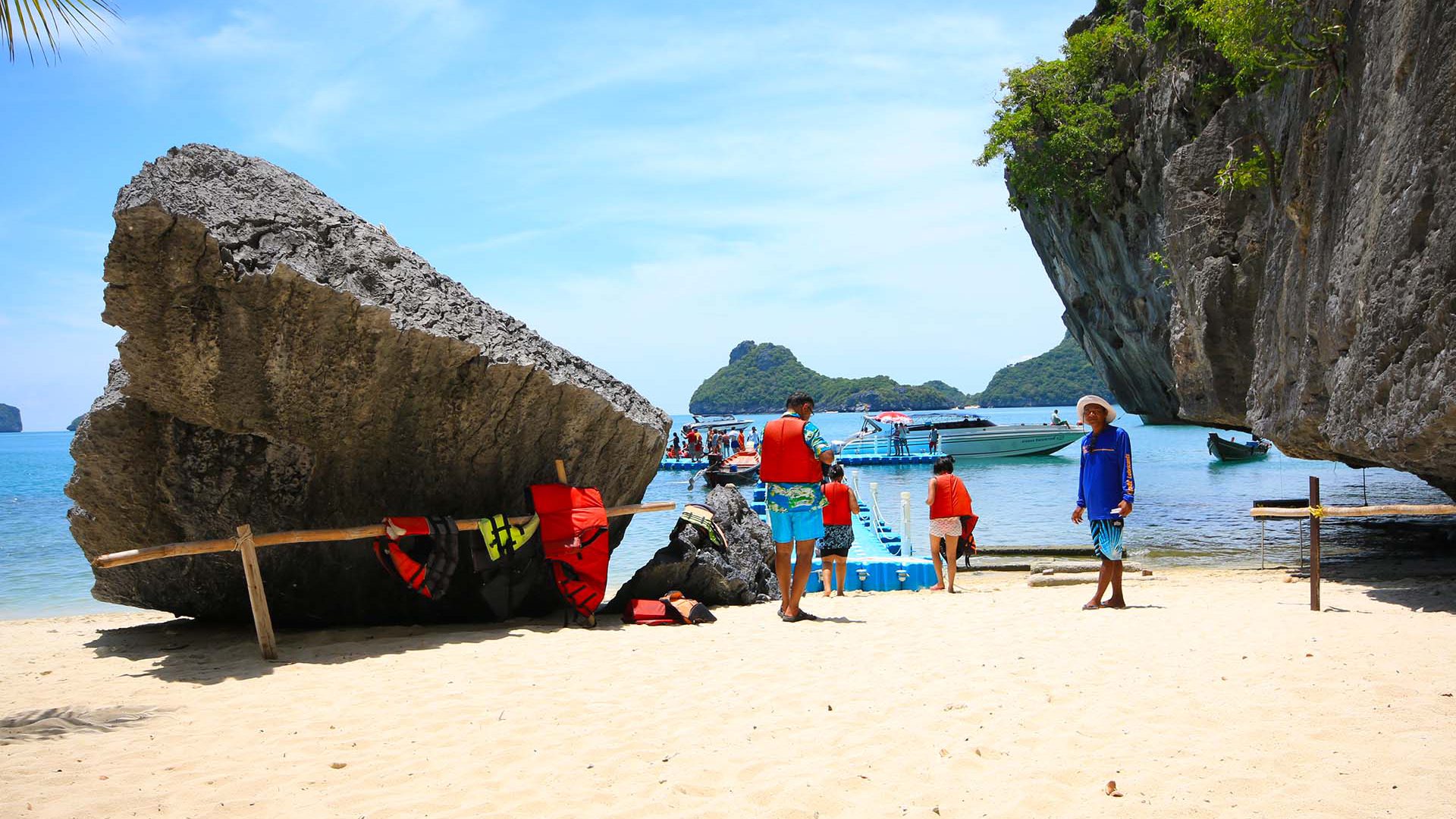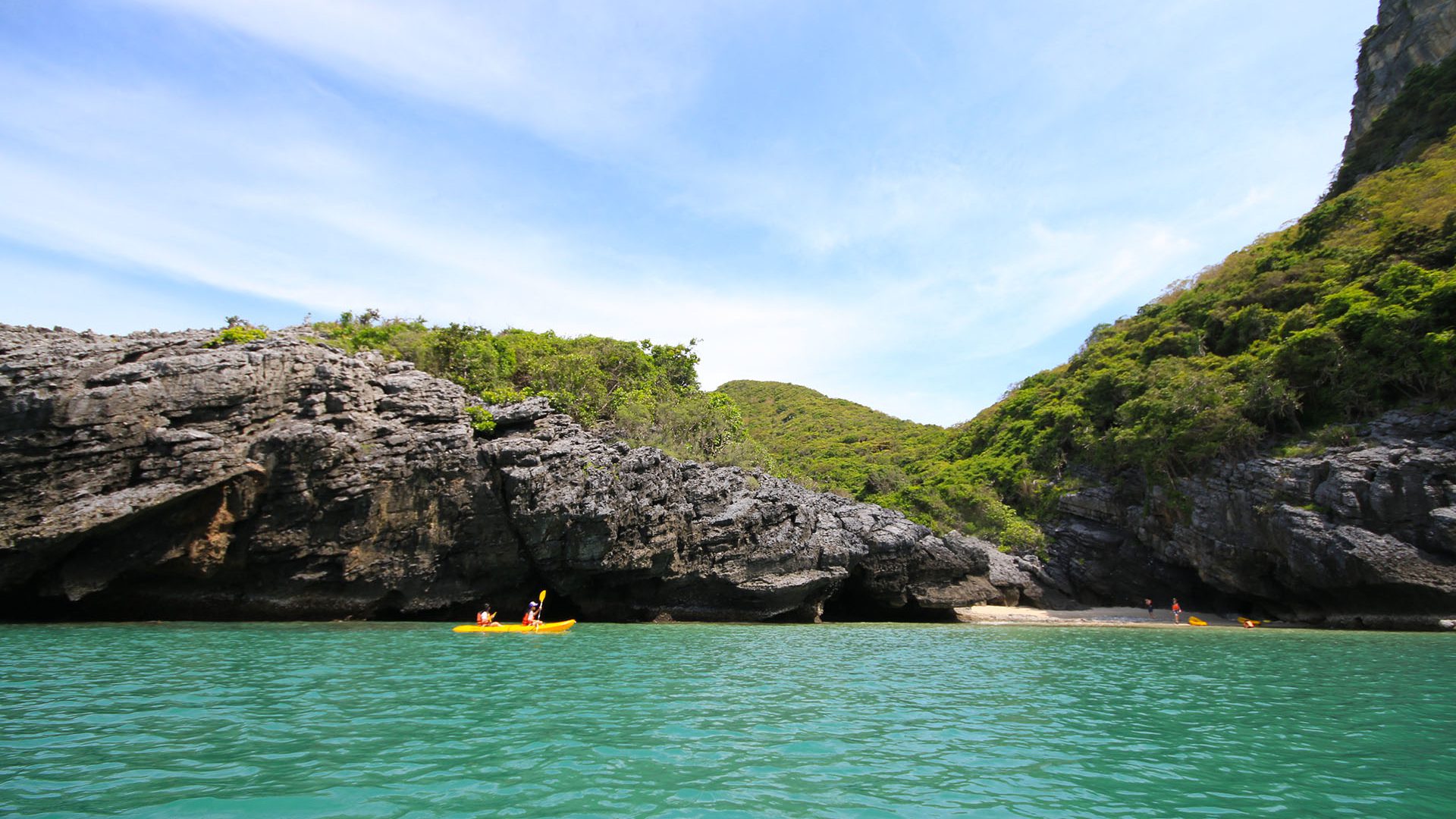 Arrive at Angthong National marine Park and set over by longtail boat or kayak to Mae Koh Island. Ashot climb following steps and stairs rewards you with fantastic views of the salt water lake known as “Talay Nai” The emerald green lagoon surrounded by sheer cliffs.