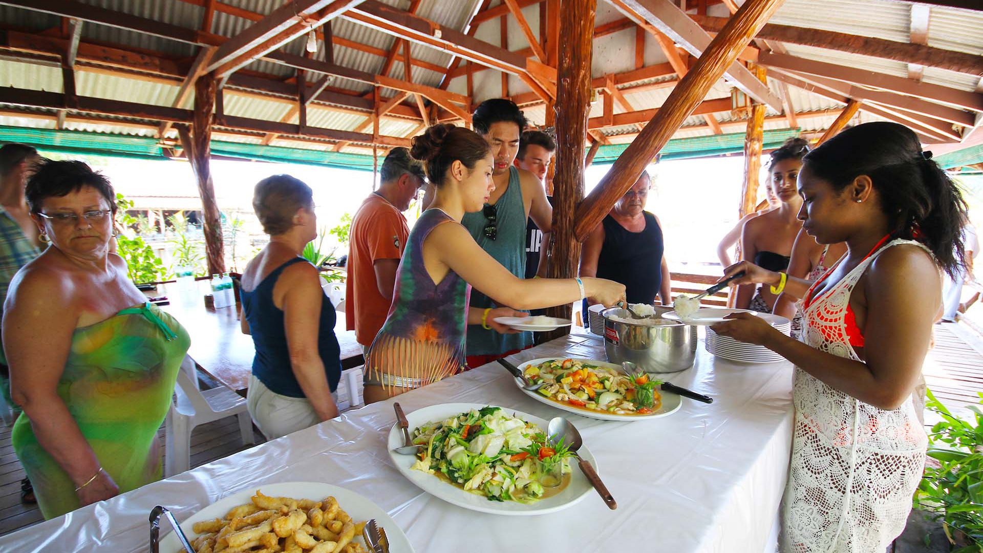Tasty Thai buffet lunch and fresh fruit on board.